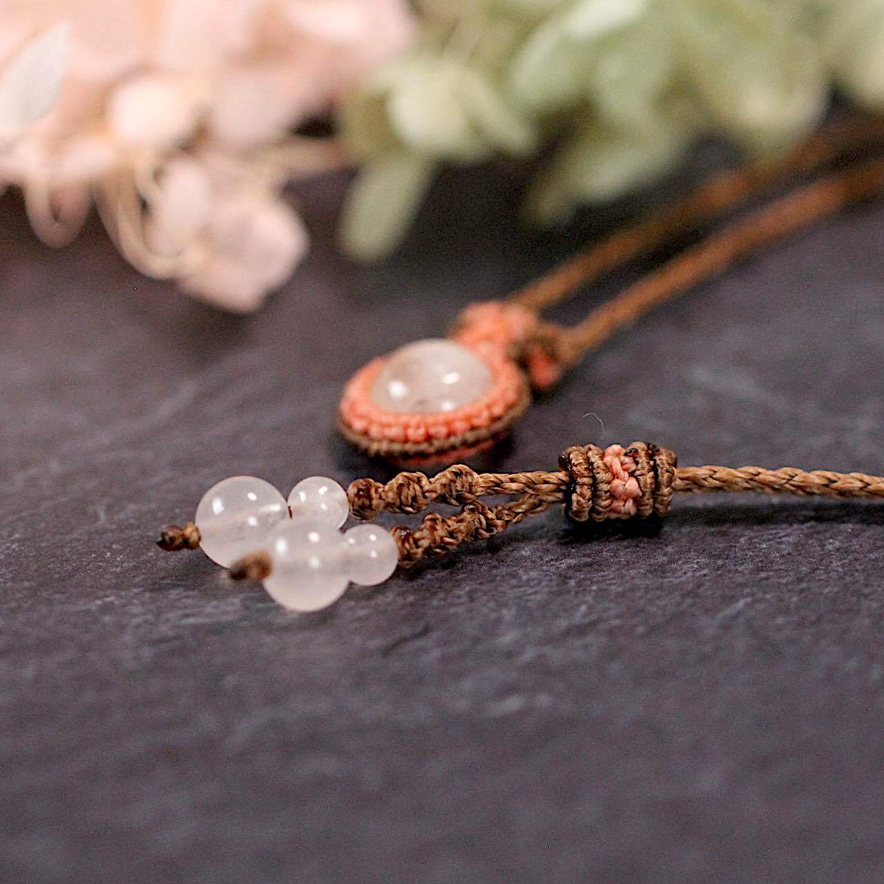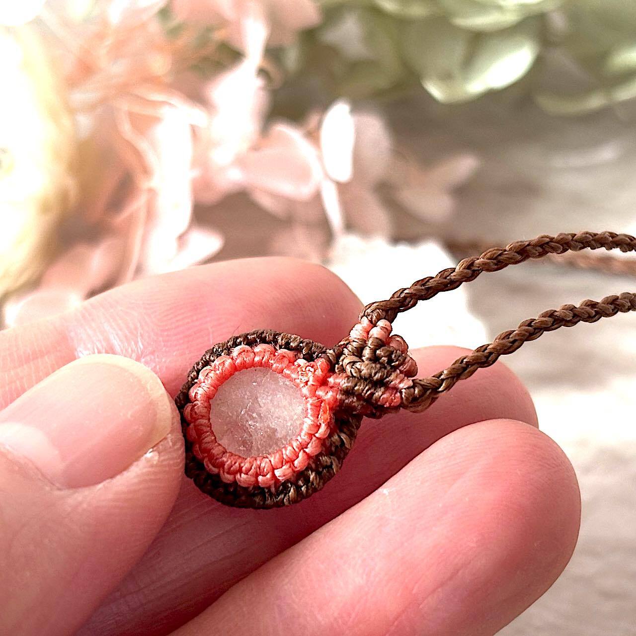 大きなお守りペンダントとの重ね付けにもよいサイズで、石と紐色を選んでセミオーダーすることも可能です。