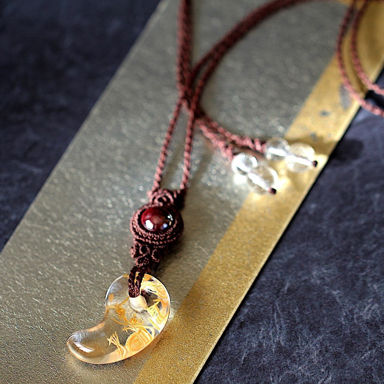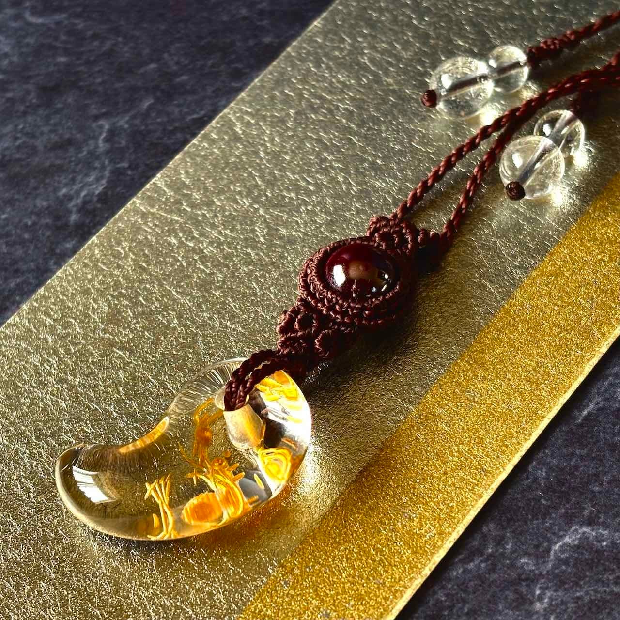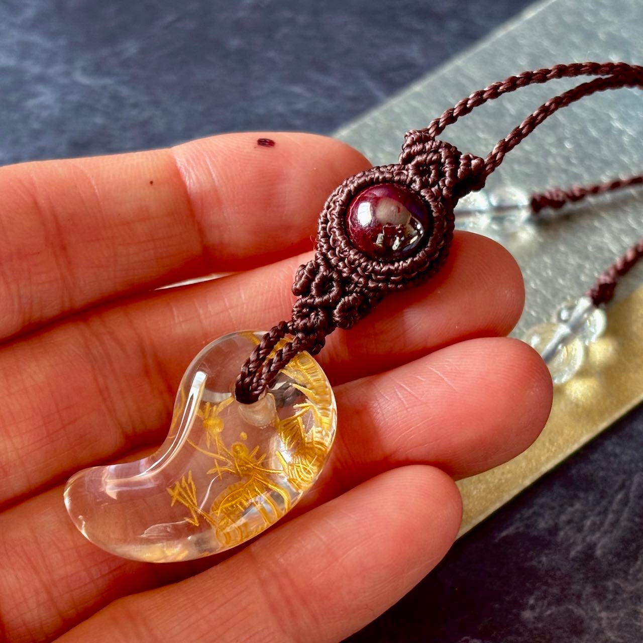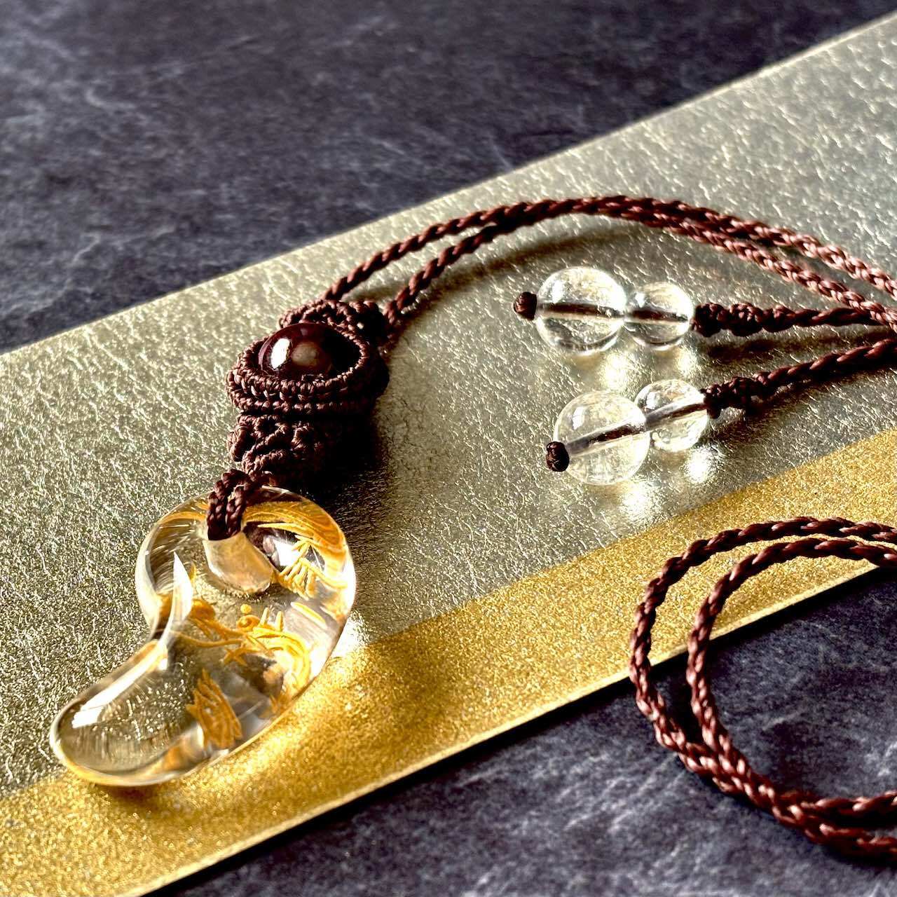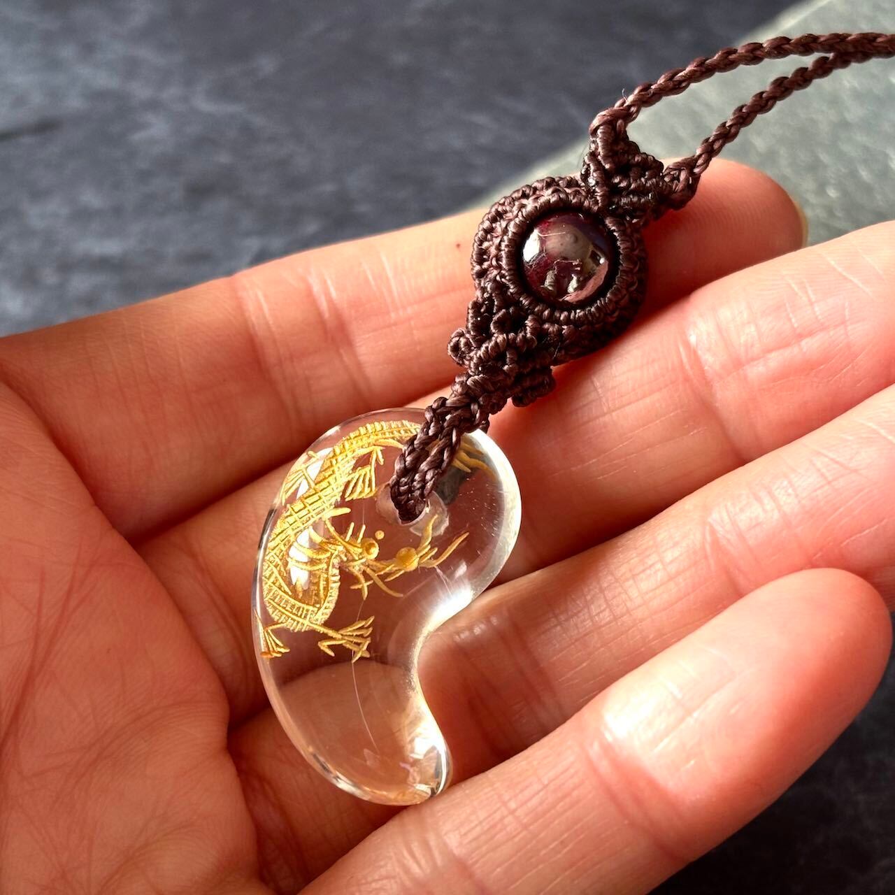 水晶勾玉をベースにした龍のお守りペンダントは、自分自身を金龍と調和したエネルギーになるよう整えたい人に最適です。