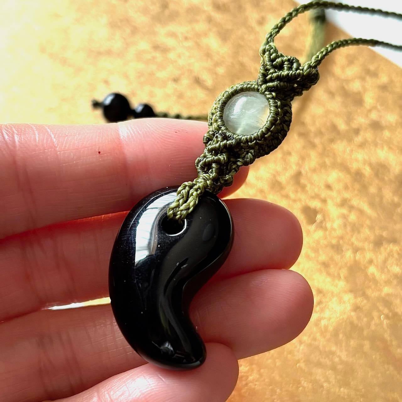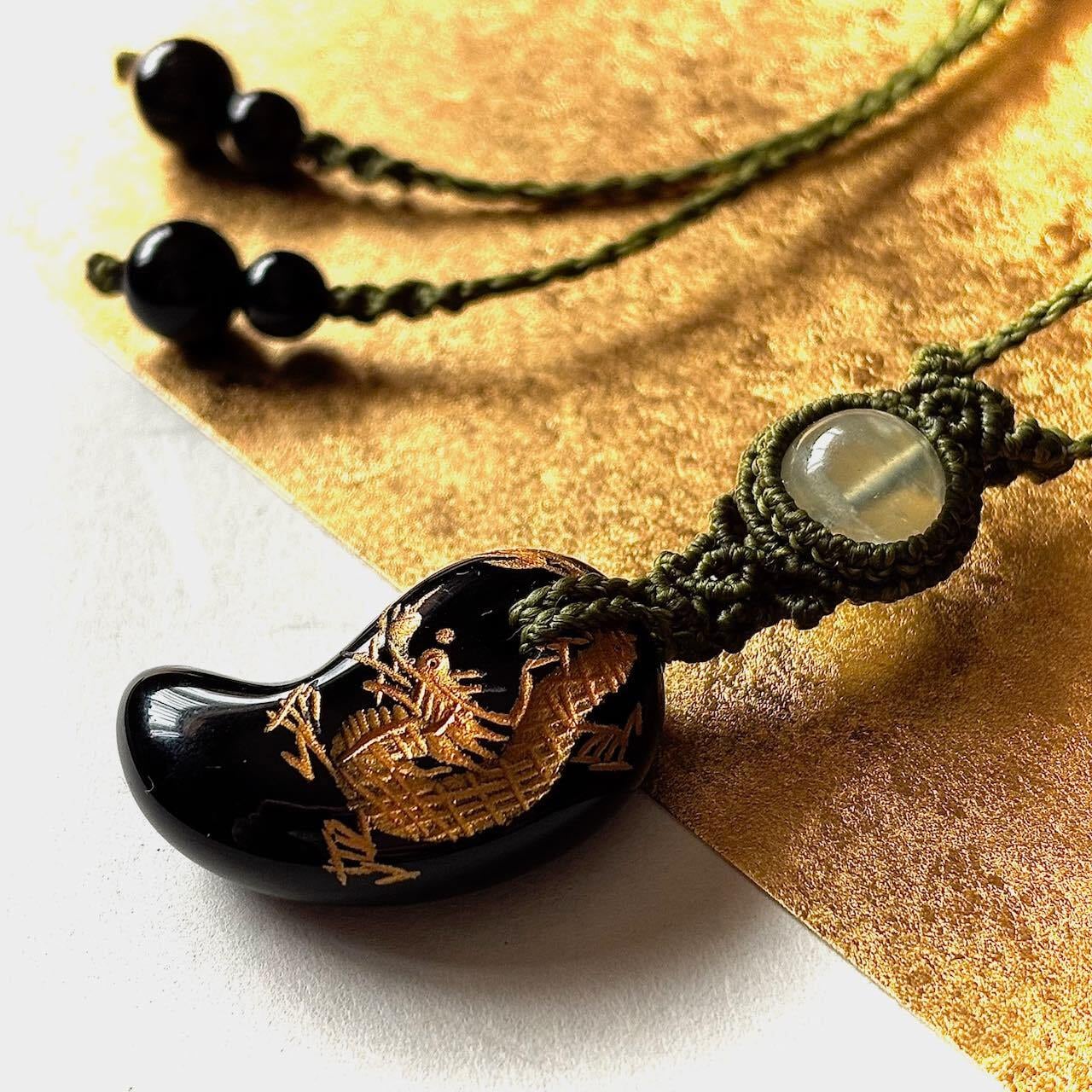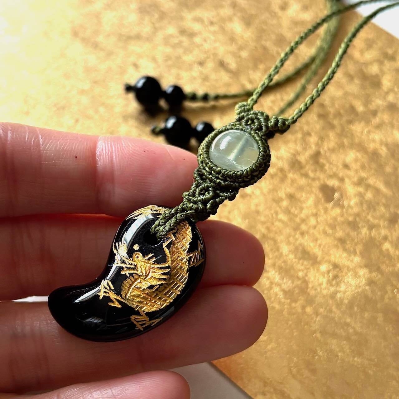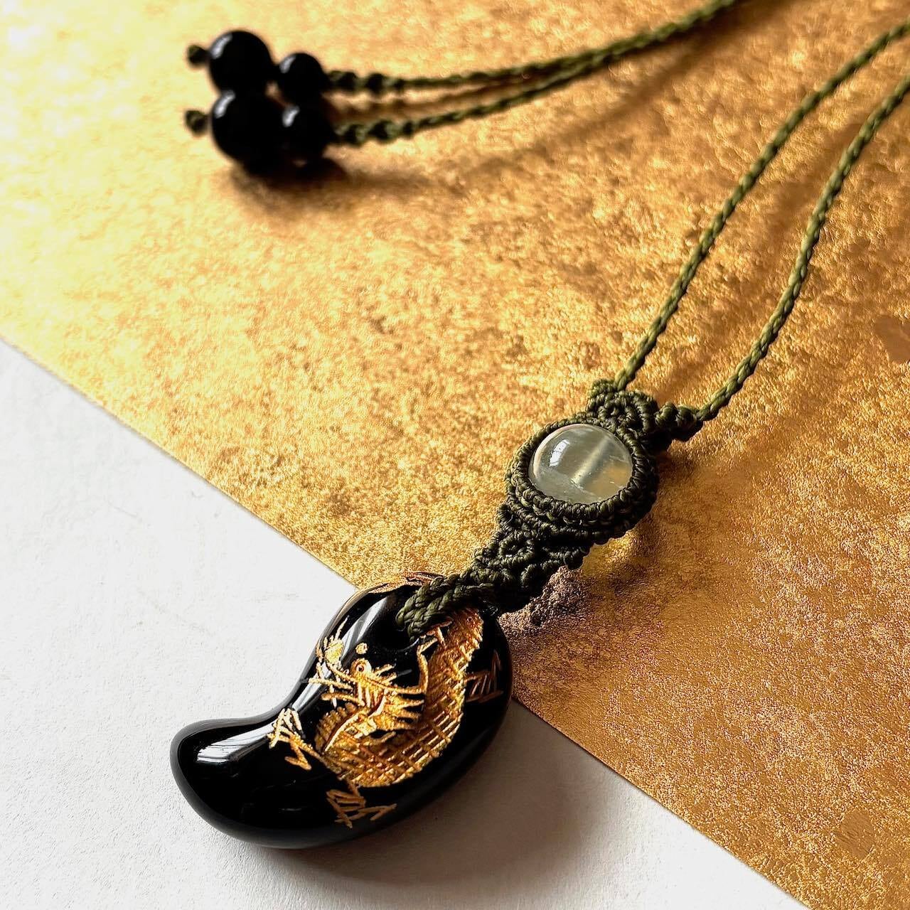 金龍が彫刻されたオニキスの勾玉にプレナイトを合わせました。