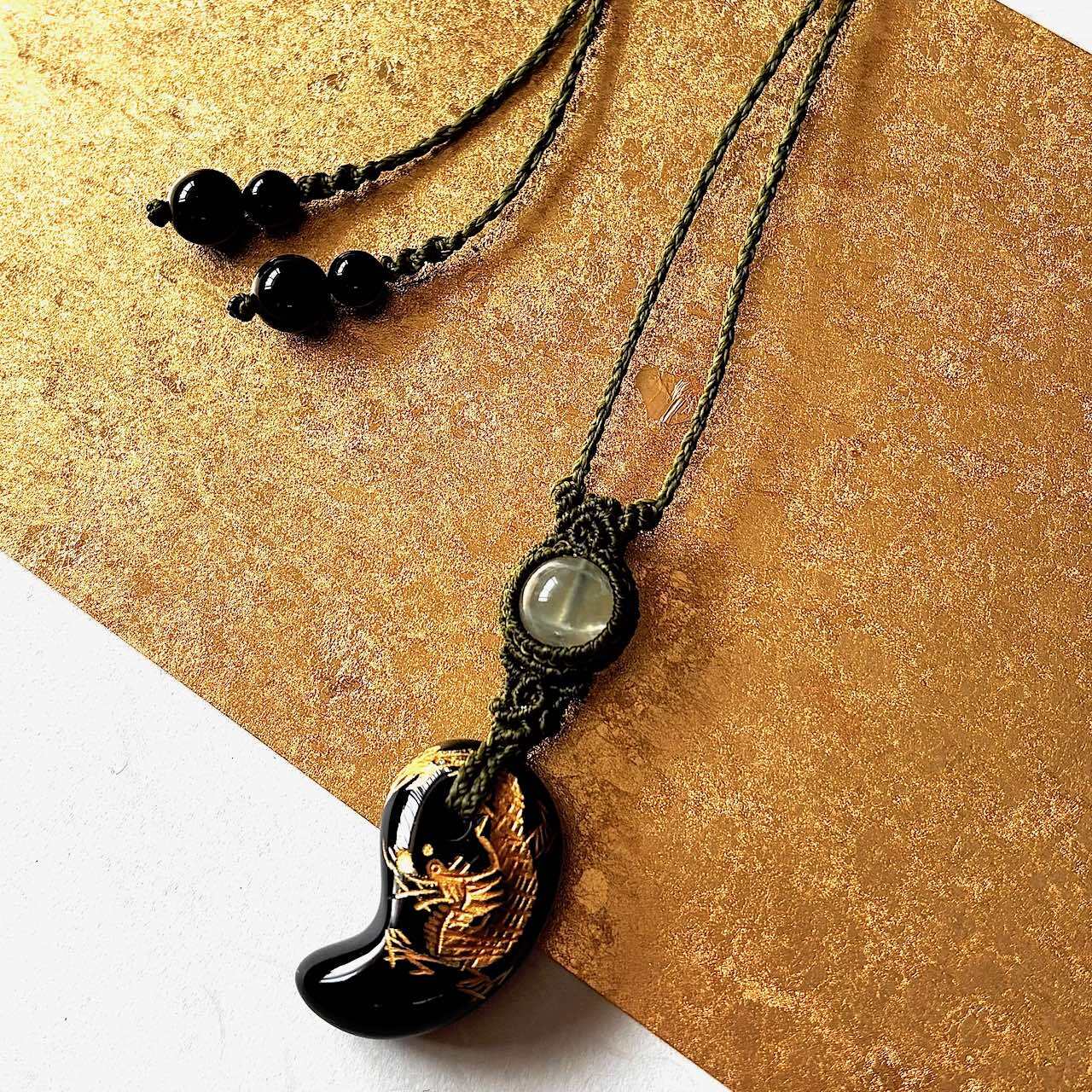 落ち着いた波動のオニキスの上に乗る活動的な金龍のエネルギーが、地に足をつけた生き方を応援します。