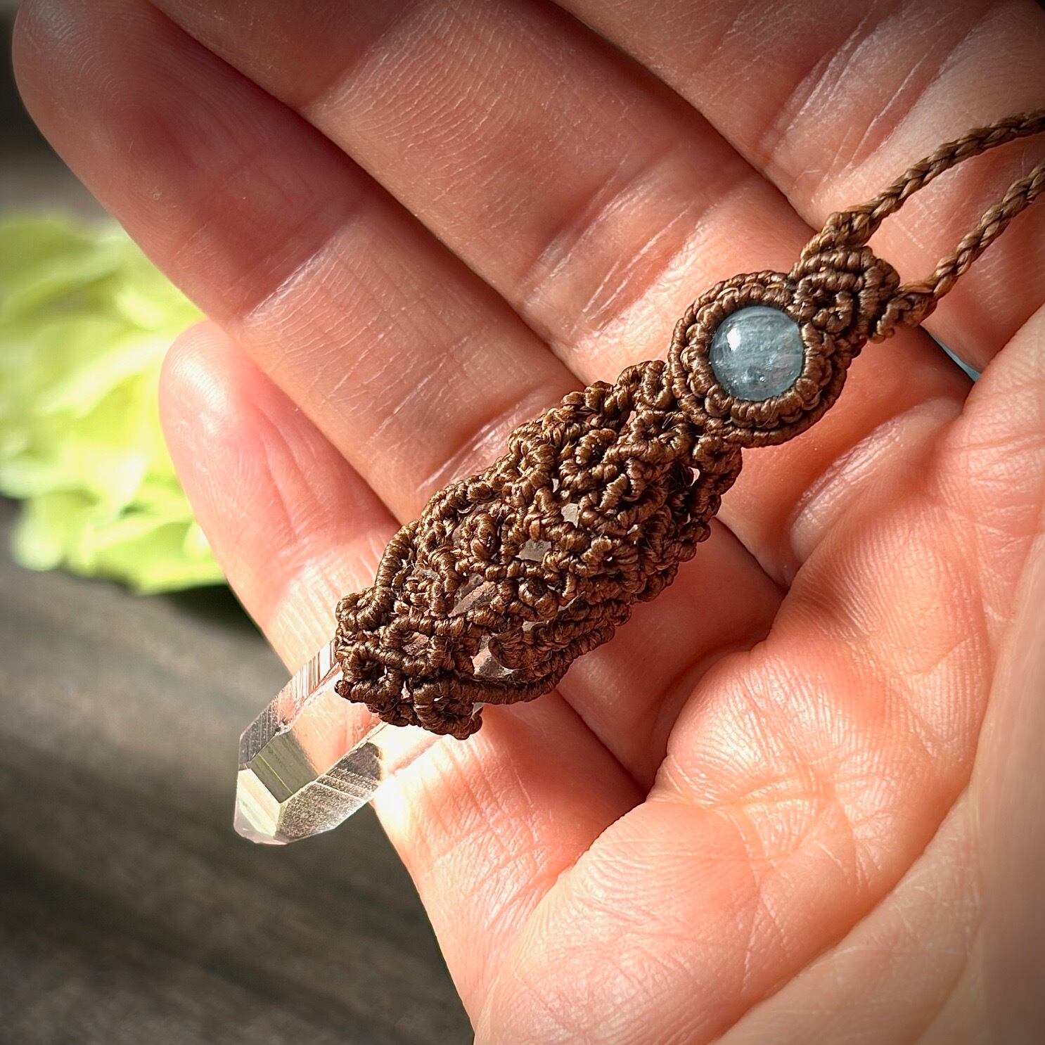 添えの石は、魂のレベルのトラウマを穏やかに癒すと言われるアクアマリンを合わせました。