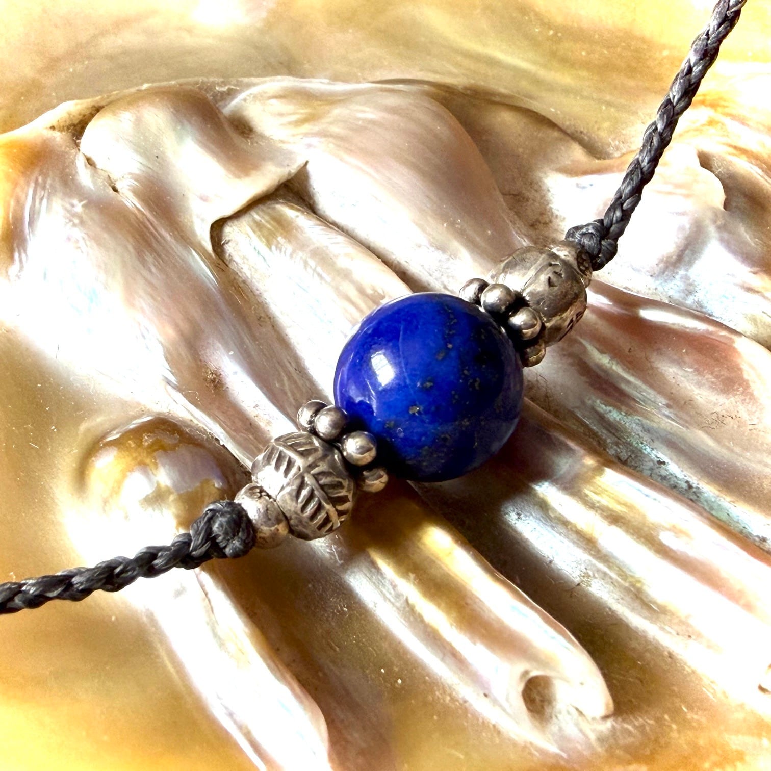 高品質なアフガニスタン産ラピスラズリにシルバービーズ (銀純度92.5〜99%)を合わせた一粒ネックレスです。