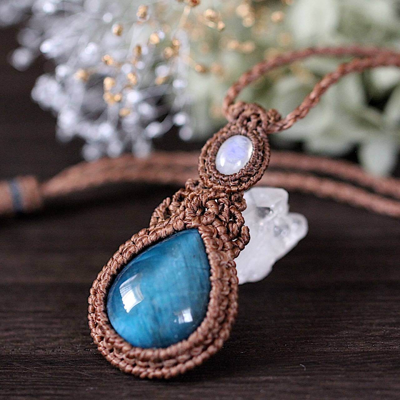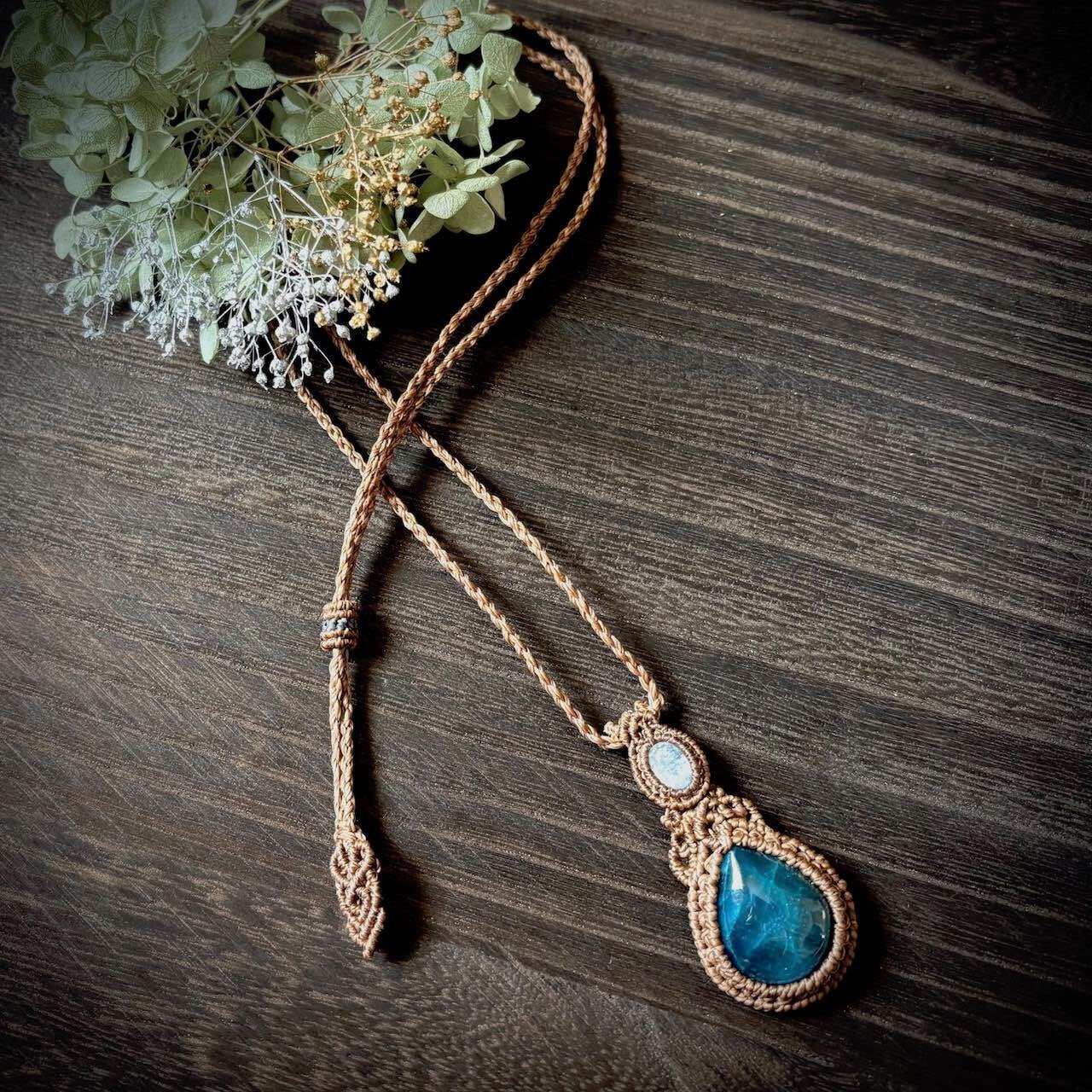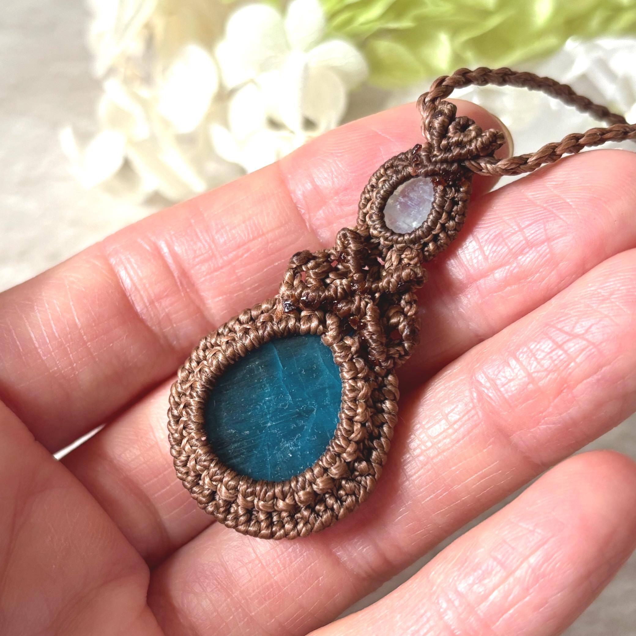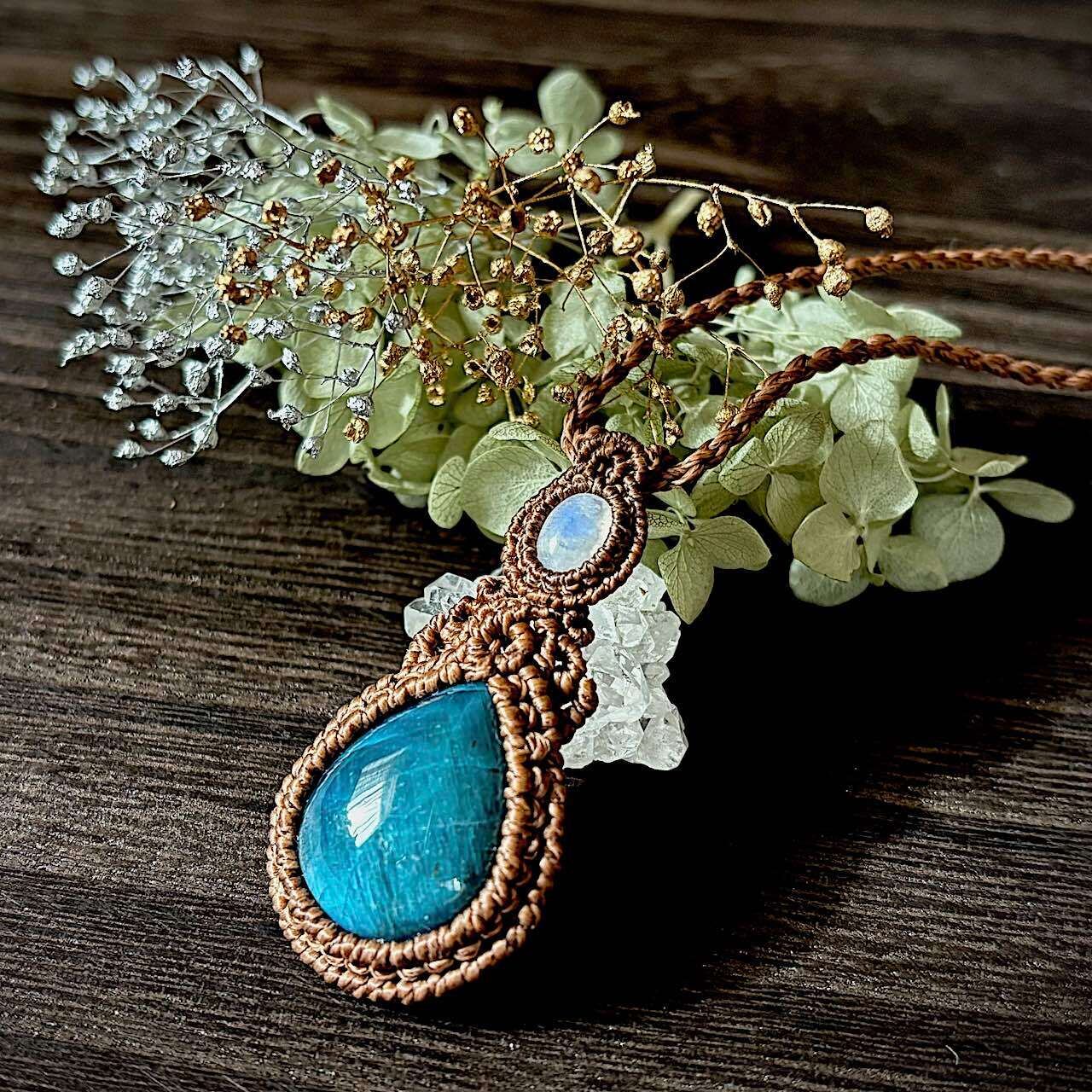 ブルーアパタイトとホワイトラブラドライトのペンダント。